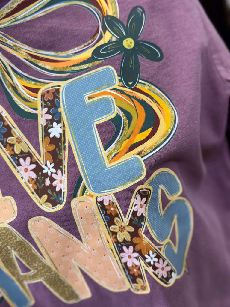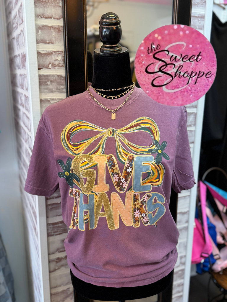 Give Thanks with a bow on unisex Comfort Colors plum tee!
